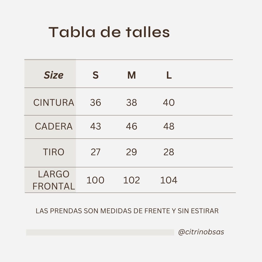 Las medidas están tomadas de la prenda apoyada en plano, de frente y sin estirar. Pueden variar mínimamente según el modelo.