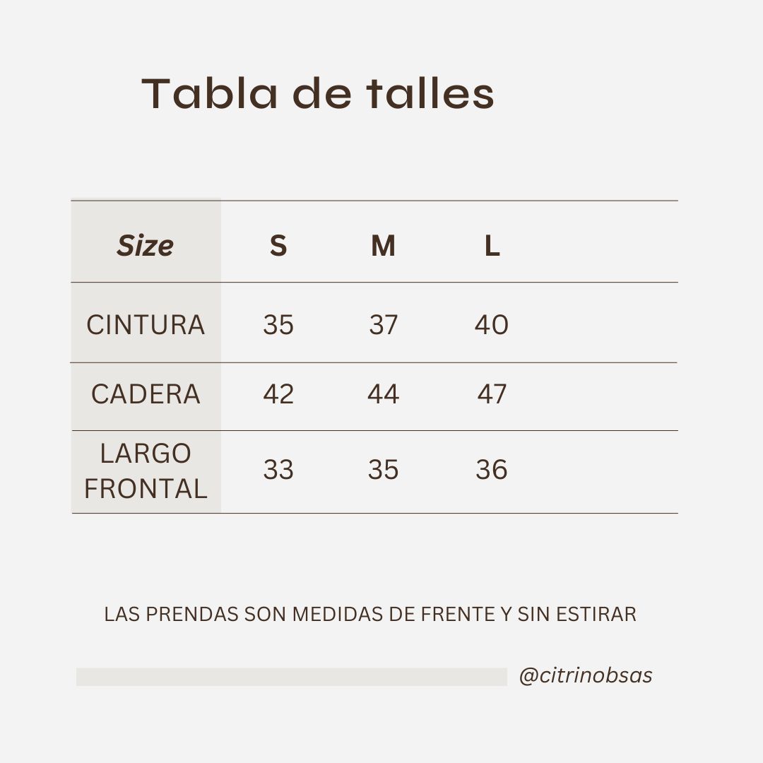 Las medidas son tomadas con la prenda apoyada en plano y pueden variar mínimamente según el modelo.